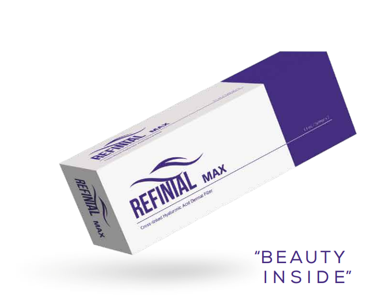 :Refinial Max uses biphasic fillers which are less volumizing, but more elastic, making them more moldable and easier to create a shape.